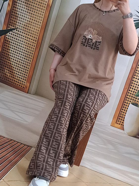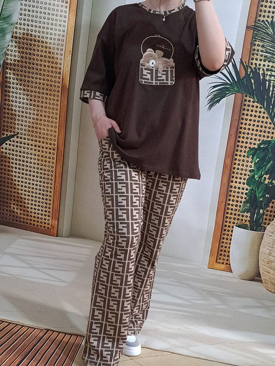 ست لانگ و بگ فندی در دو رنگ نسکافه ای و قهوه ای