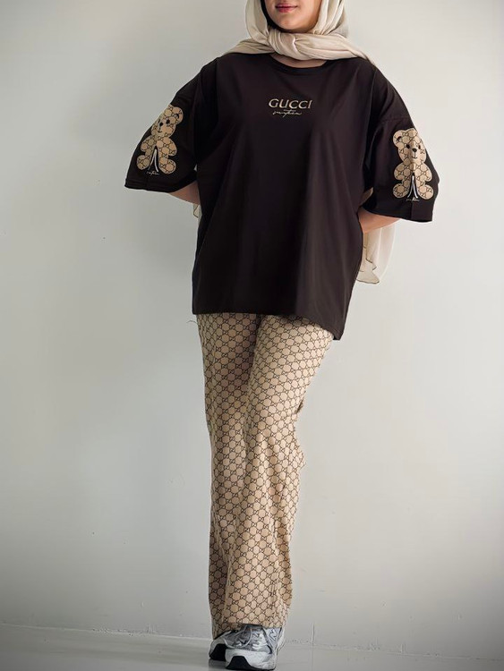 ست تیشرت و شلوار آستین خرسی 🧸🤎